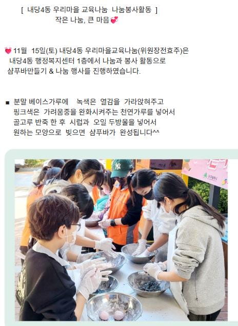서구_내당4동 우리마을 교육나눔.봉사활동-작은나눔, 큰 마음