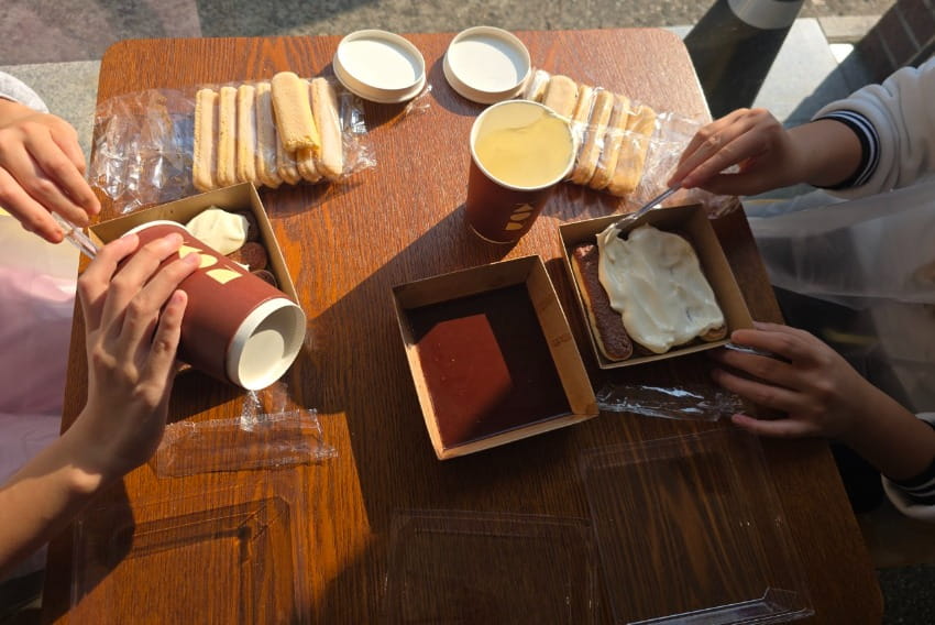 ●내용: 마을내 체험처에서 초코티라미수 만들기(커피대신 초코원액 사용)