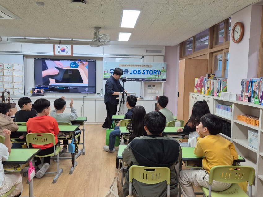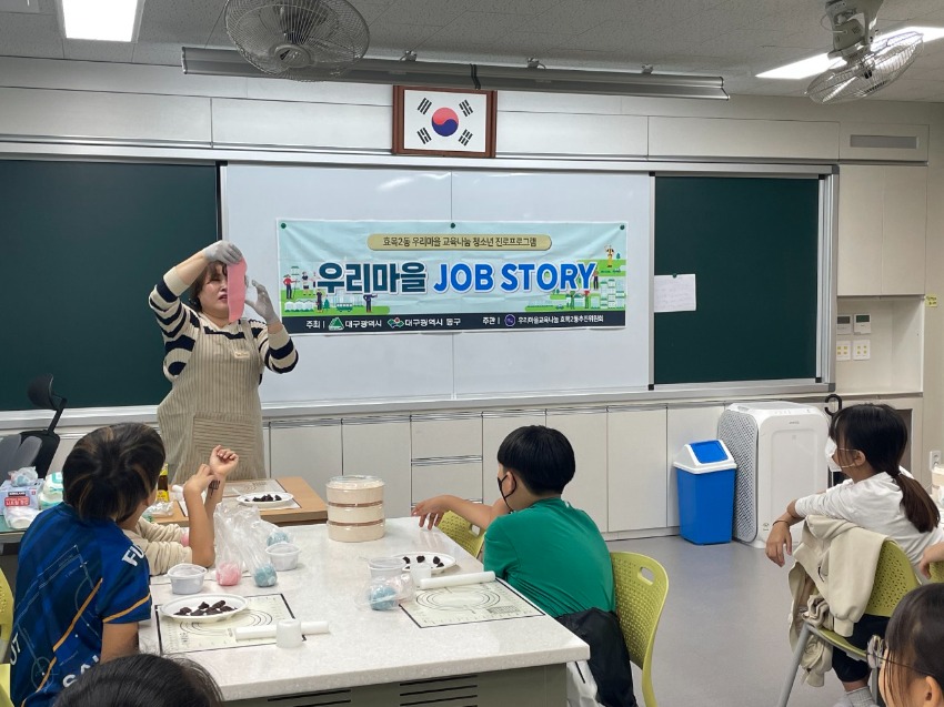 내용: 우리마을교육나눔에서는 해마다 학교측과 협의하여 효목초등학교 4학년을 대상으로 우리마을 JOB STORY 수업을 진행하고 있습니다.디저트전문가바람떡만들기, 방송댄스, 마술 세가지 분야로 진행되며 오늘 2,3교시에 수업이 있었습니다.