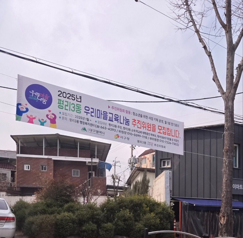 25년도 우리마을교육나눔 추진위원모집 현수막 및 배너를 제작하여 동 여러곳에 설치했습니다.