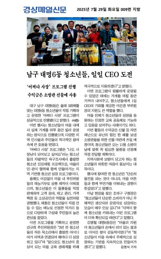 (언론보도)대명6동 어쩌다 사장 !! 경상매일신문