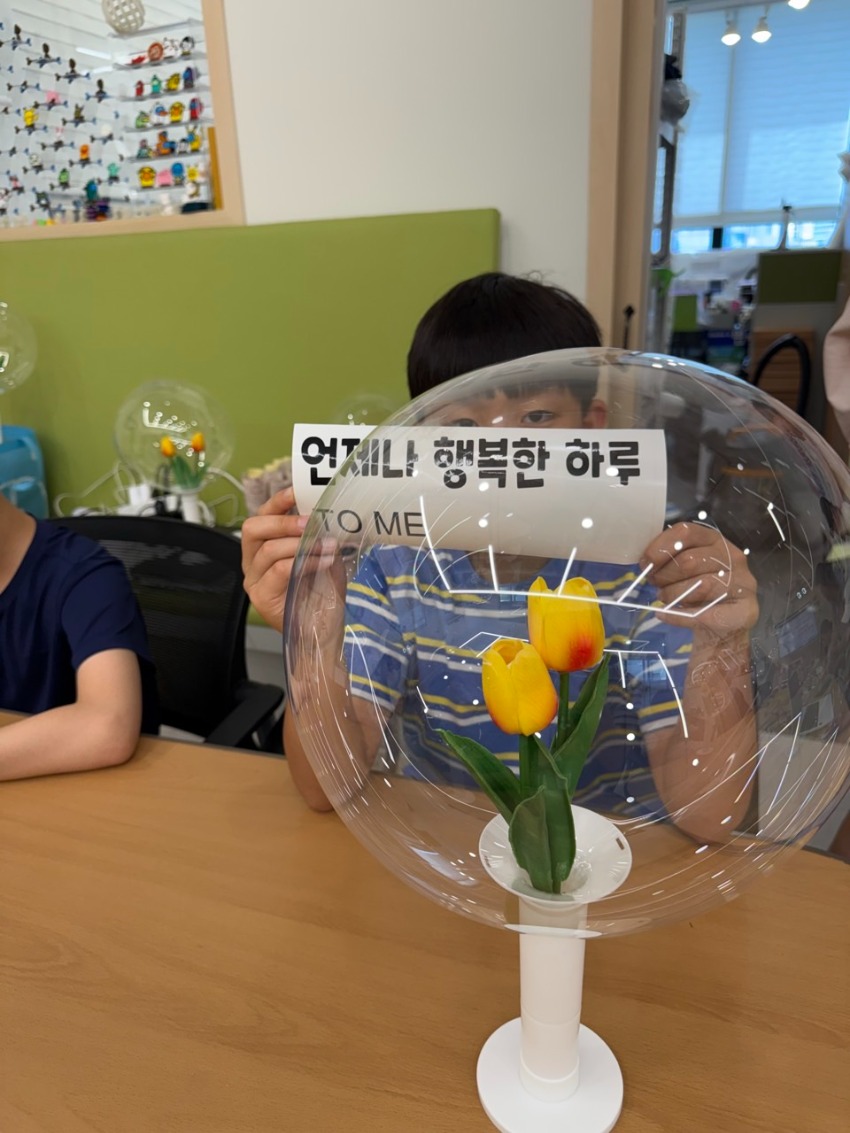 다양한 색상과 형태의 풍선에 마음을 담은 메세지 적어보며 창의력을 키우는 활동
