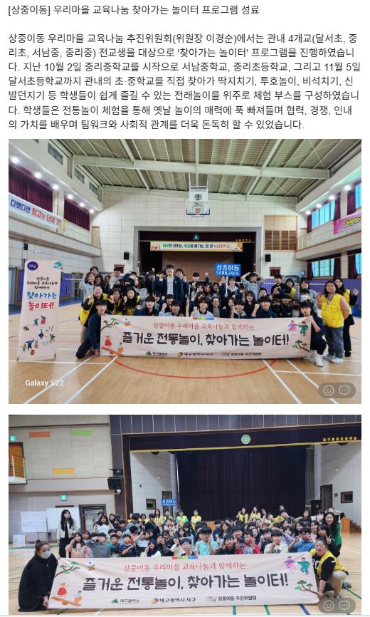 서구_상중이동 우리마을 교육나눔 찾아가는 놀이터 프로그램 성료