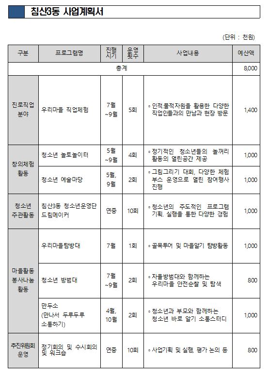[북구] 침산3동 프로그램 운영 계획서(2023년)