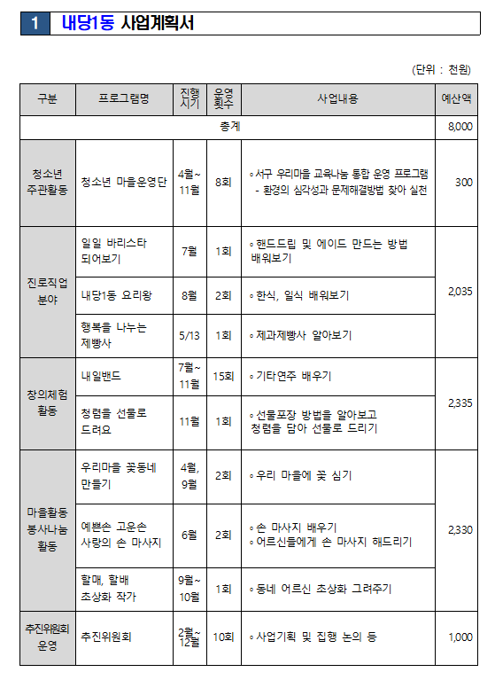 [서구] 내당1동 프로그램 운영 계획서(2023년)