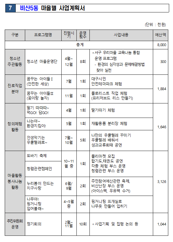 [서구] 비산5동 프로그램 운영 계획서(2023년)