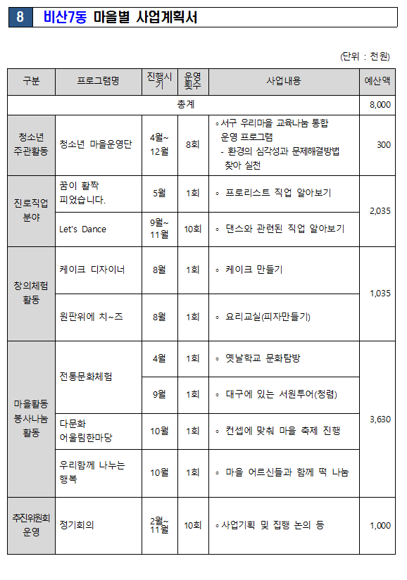 [서구] 비산7동 프로그램 운영 계획서(2023년)