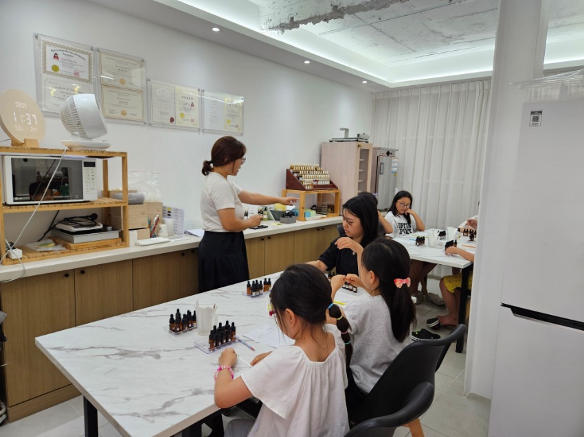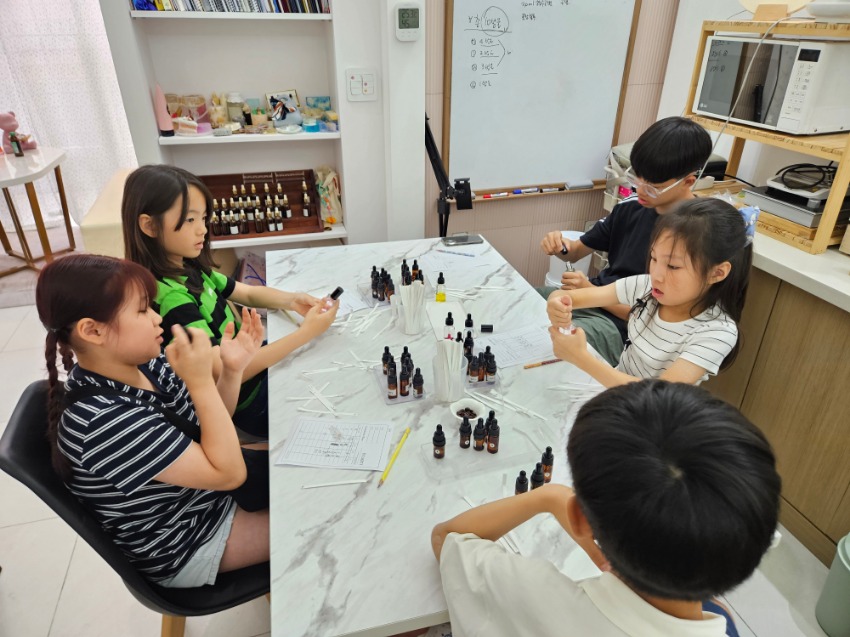 아이들과 함께 다양한 향을 직접 블렌딩하며 세상에 단 하나뿐인 나만의 향수를 만들어보는 시간을 가졌습니다.향기를 통해 나를 표현하고 창의력을 발휘하며, 즐겁고 특별한 추억을 쌓을 수 있는 체험이었습니다 :)