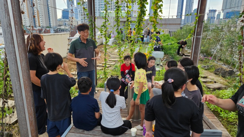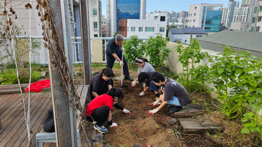 무럭무럭 자란 고구마를 손수 수확하며 자연의 소중함도 함께 느낄 수 있었는데요, 이번 체험은 동인동 동장님께서 특별히 옥상을 개방해 주셔서 가능했던 소중한 자리였습니다.