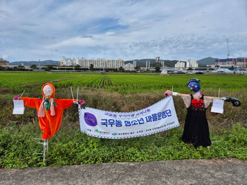 지난번 마을운영단 친구들 주도하에 만들었던 허수아비가 전시되어 있는 논두렁밭두렁 마을축제에 참가하였습니다~