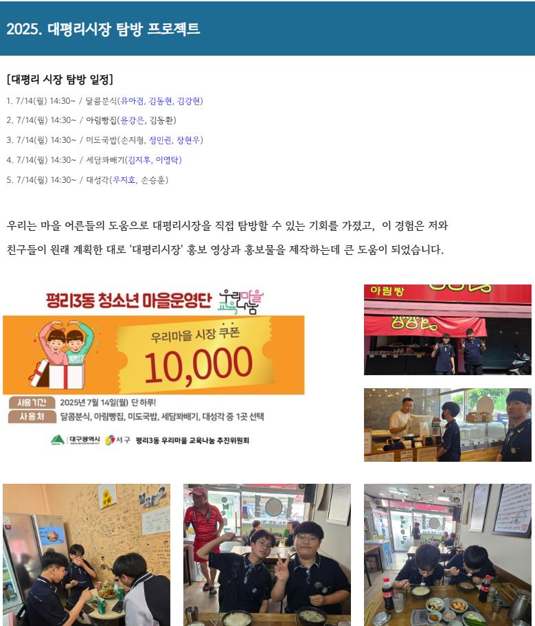 서구_평리3동 청소년마을운영단 대평리시장 프로젝트